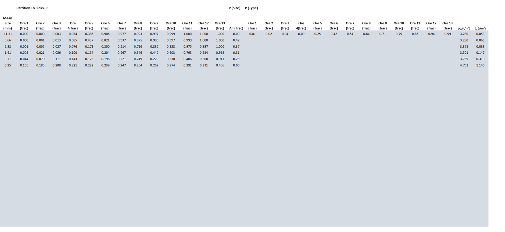 | Passes | Display | The user-specified (in the field FracForPassesSizeCalc) fraction of material in each stream will pass this size fraction. |